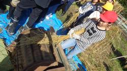 10月7日(火)G5・6の子どもたちと稲の脱穀作業を行いました。