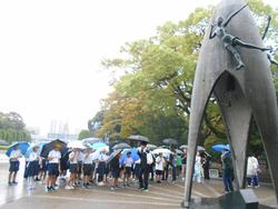 原爆の子の像の前でおこなった慰霊祭では、厳かな雰囲気のもと、みんなが堂々とそして心から平和への思いを込めて誓いの言葉を発表しました。