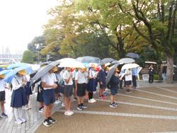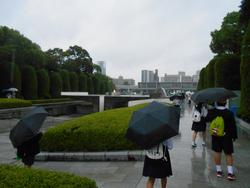 資料館を出た後は、雨の降る中、公園内の慰霊碑を巡るフィールドワークを行いました。