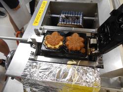 係の人から説明を聞き実際に作りましたが、ほんのりと焦げ茶色をしたとても良い出来映えのもみじ饅頭ができあがりました。