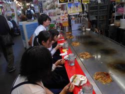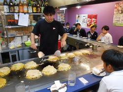 お昼ご飯は、「ひろしまお好み物語駅前広場」の屋台で、4グループに分かれてお好み焼をいただきました。
